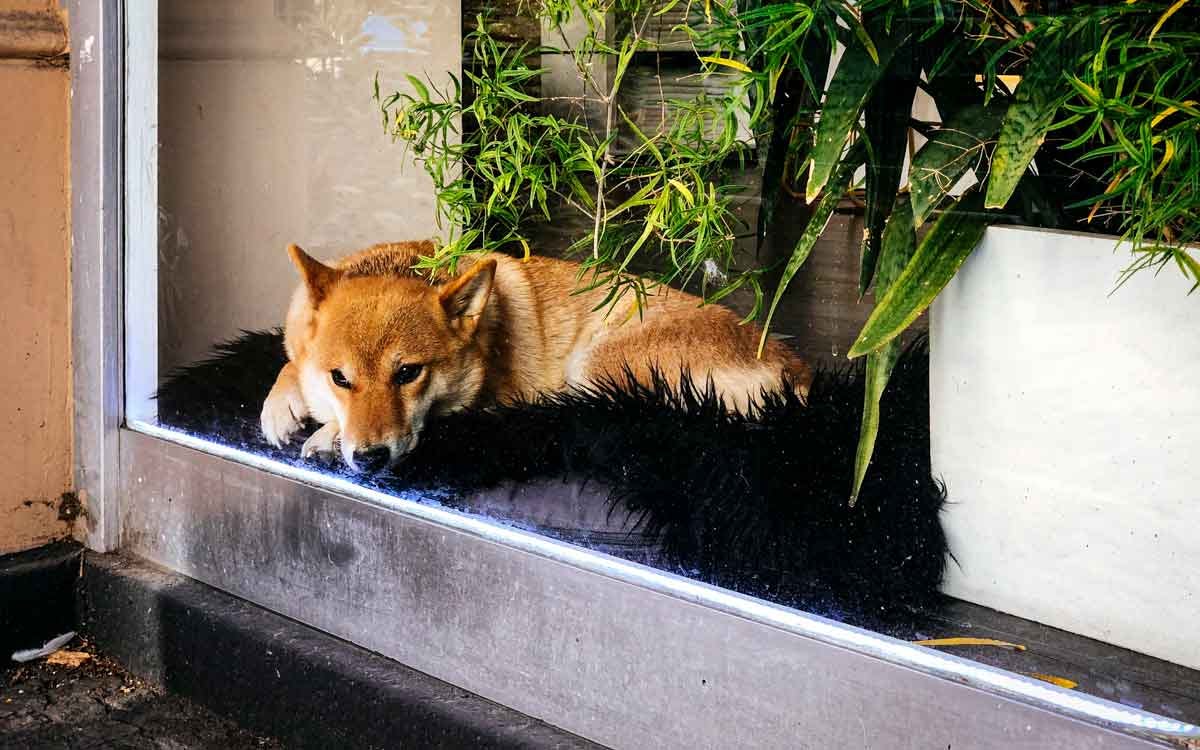 This dog traveled only as far as its person’s workplace, where she watched the world go by from the comfort of her dog pillow. Back in Louisville before we moved to Europe, Riesy and her brother made the daily trip upstairs to my home office.