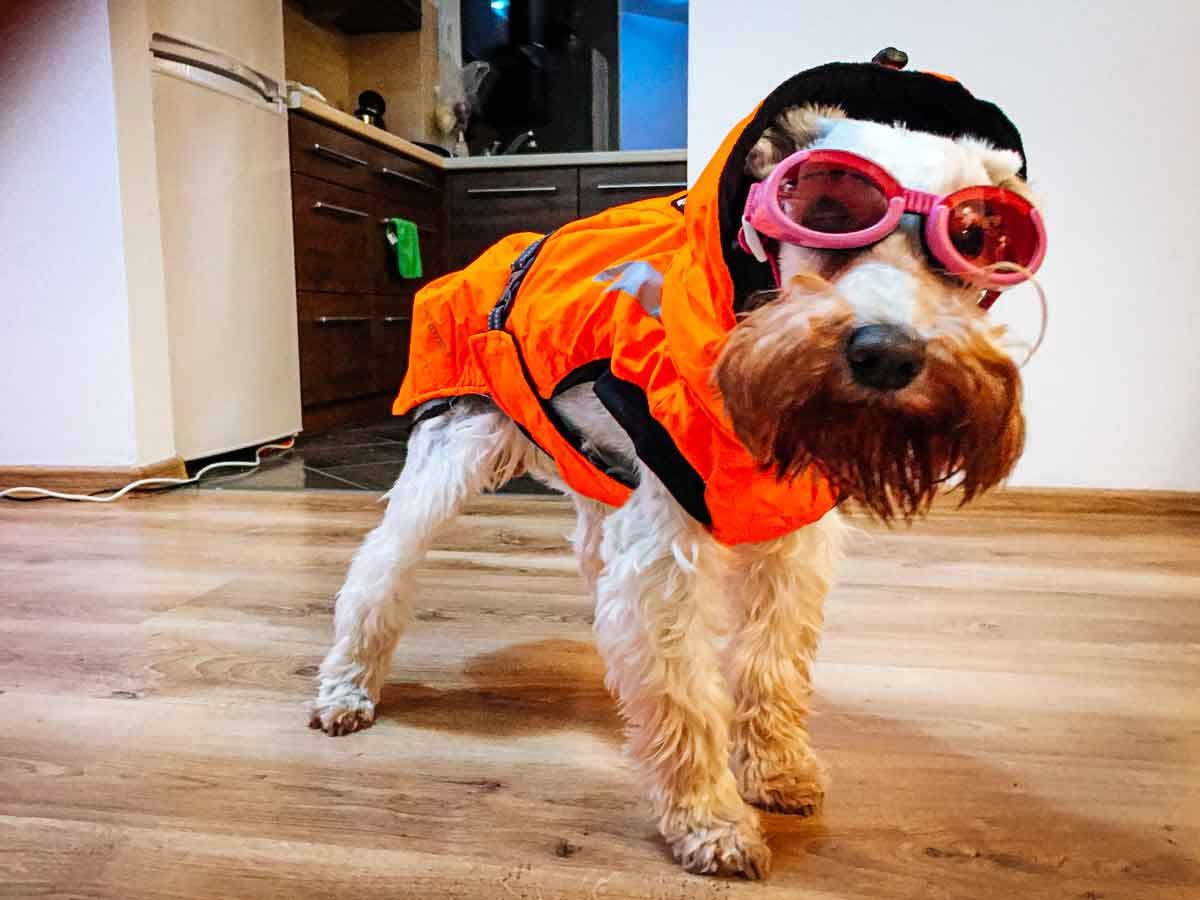 We bought Riesy a parka and doggles to help her brave the cold Słupsk winters. When we put the parka on her, she would list to one side so much that we thought she’d keel over like the Swedish warship Vasa. However, she always managed to stay even-keeled. Once outside, she forgot about the parka and romped around normally. I guess she liked that the parka kept her warm. However, she never warmed up to the doggles.