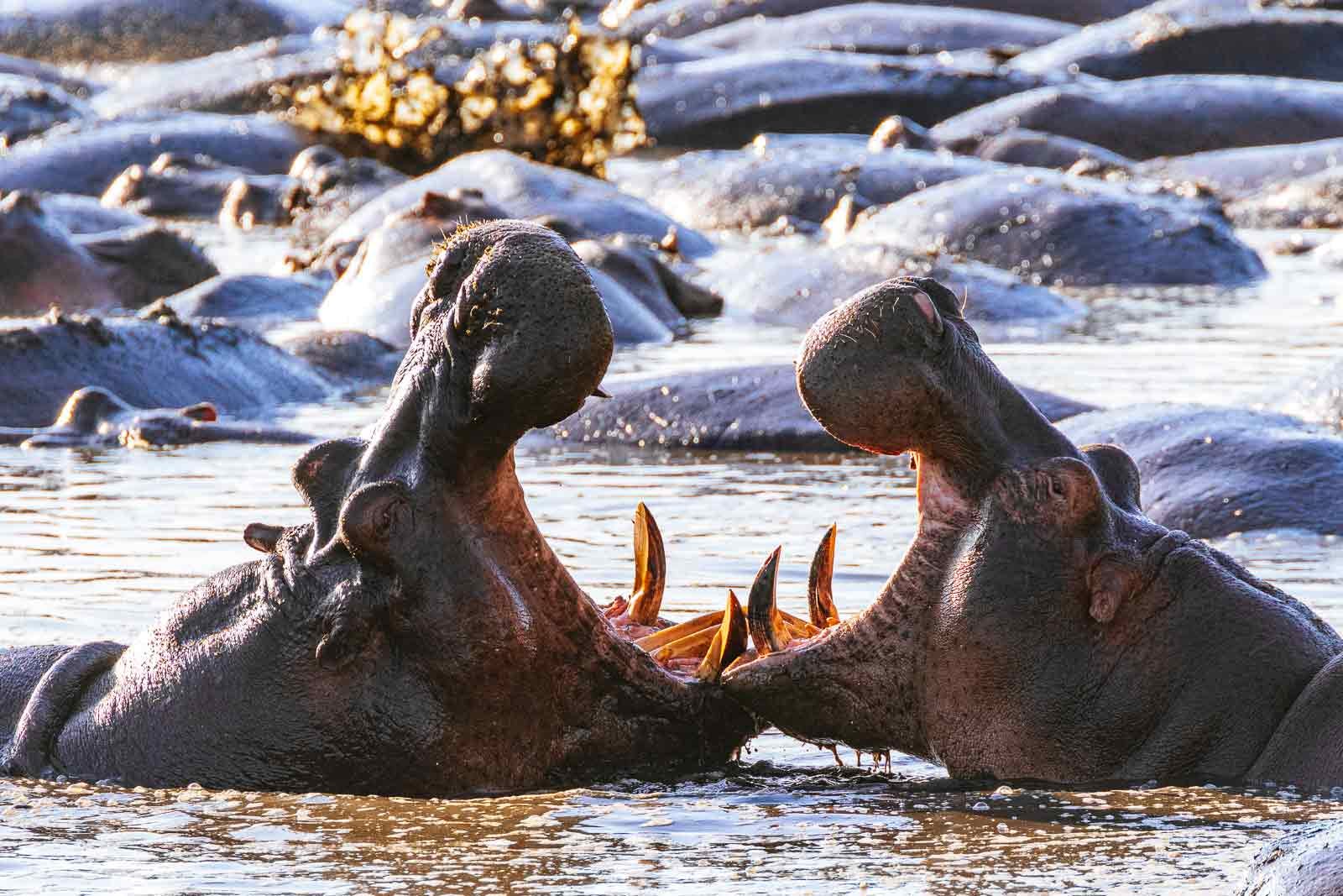 These hippos found a lovely, rancid pond to lounge and tussle in.