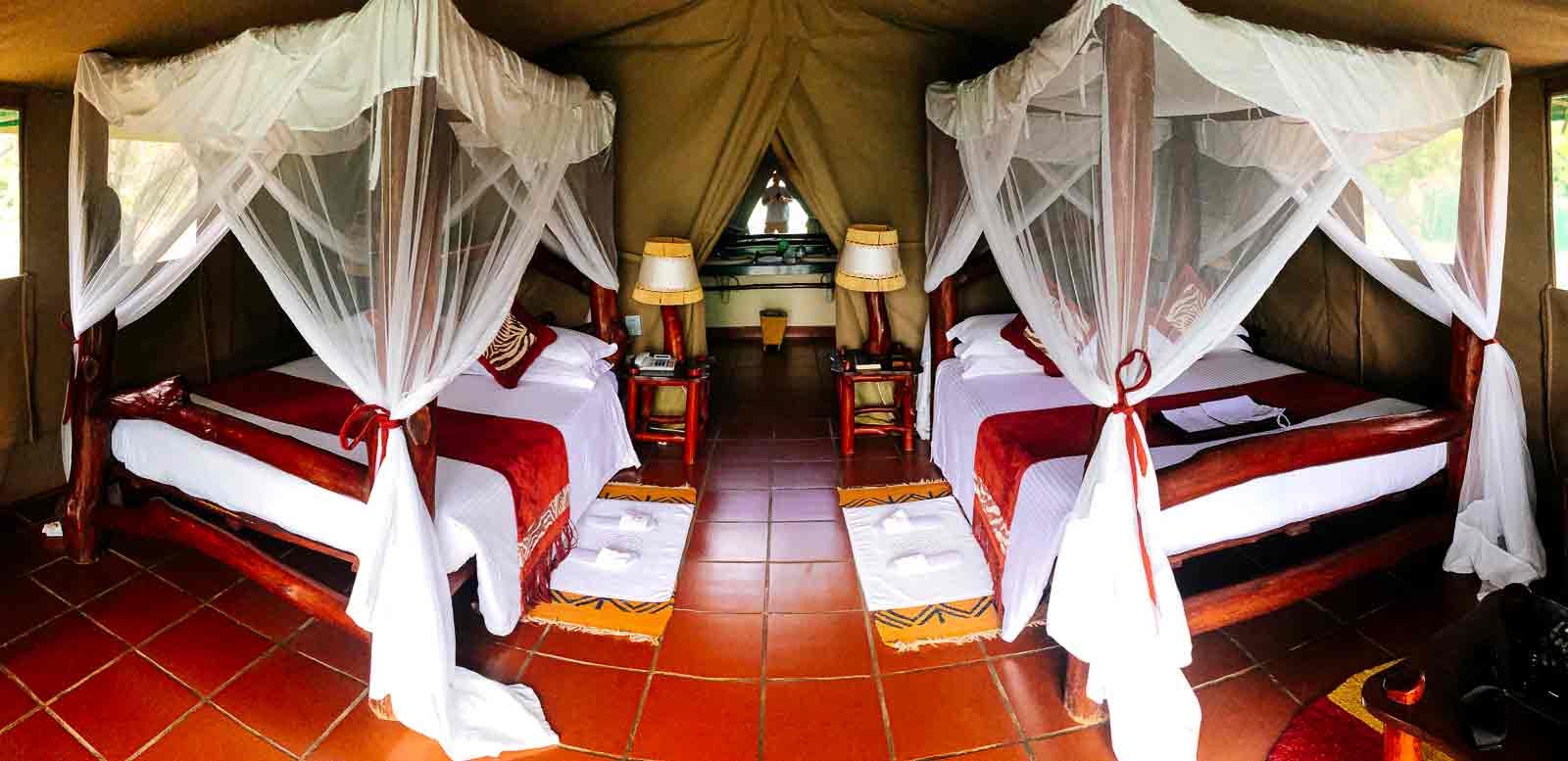 Our final lodge was Mbuzi Mawe, a tented safari camp. When I say “tented,” perhaps you’re imagining something like a pup tent or maybe a larger tent that you used when your parents made you go camping. This tent was not like that.