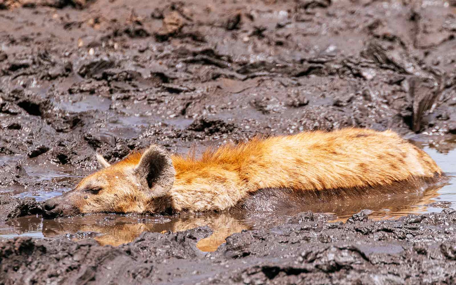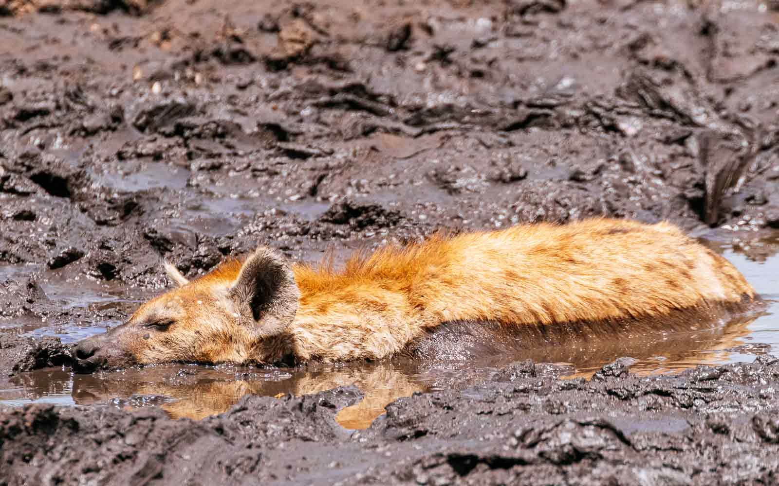 For instance, this hyena found a comfy mud hole.