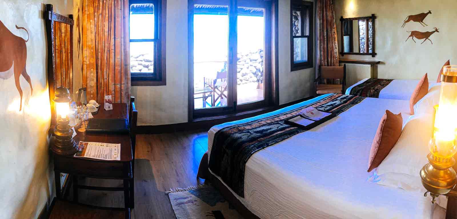 Our lodge, hugging the western rim of the caldera, was situated so that every room had a view of the caldera floor. From our balcony, watching the sun rise from behind the opposite side of the caldera as we were preparing for the day’s game drive, we heard the cowbells ring (ngoro ngoro ngoro ngoro) as the cattle were led to graze, birds calling (to who exactly?) and the zebras braying. In the evening, after returning from the game drive, we watched the setting sun paint everything orange, pink and finally purple before disappearing. The sun’s departure revealed a second, equally spectacular, light show; the night sky, unbothered by light pollution, was bursting with stars. We now plan to buy a telescope in retirement.