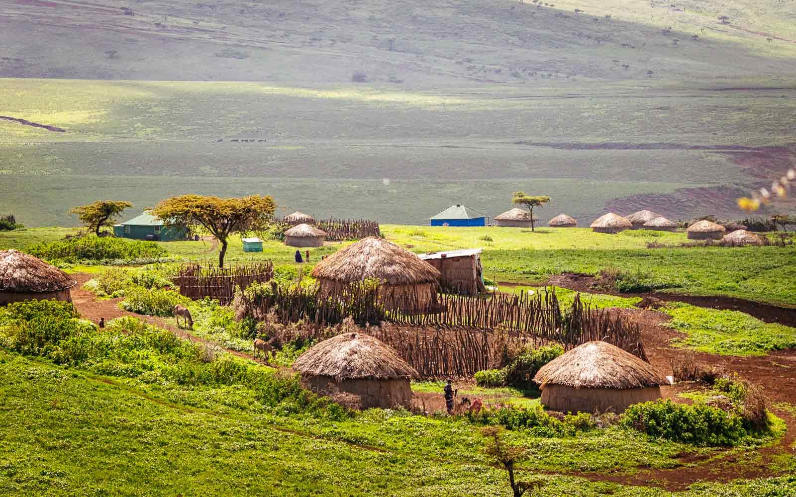 A Maasai village on the outer slope of the Ngorongoro crater.